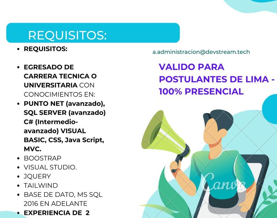 #USEG | Empleabilidad UNAC ¡¡APROVECHA ESTA OPORTUNIDAD!! DEVSTREAM, se encuentra en la búsqueda de: PROGRAMADOR .NET https://goo.su/bNudF CARRERAS: Egresado de Ingeniería de Sistemas o afines. Si le interesa la vacante o conoces a alguien que pueda interesarle, puede postular ingresando al enlace anterior y enviar […]