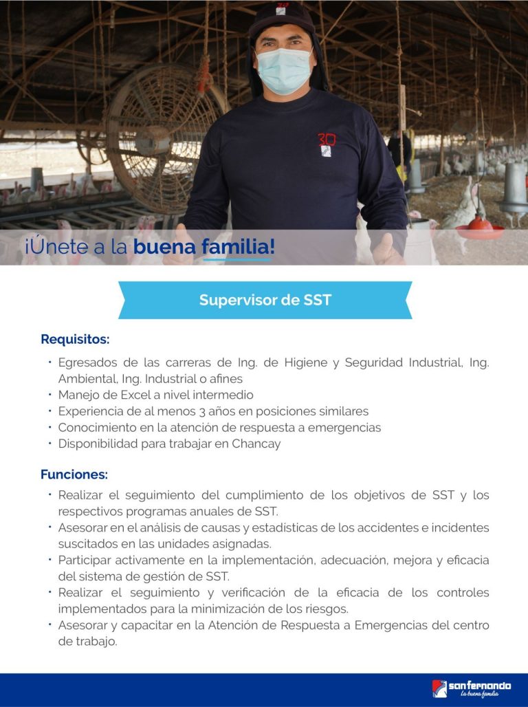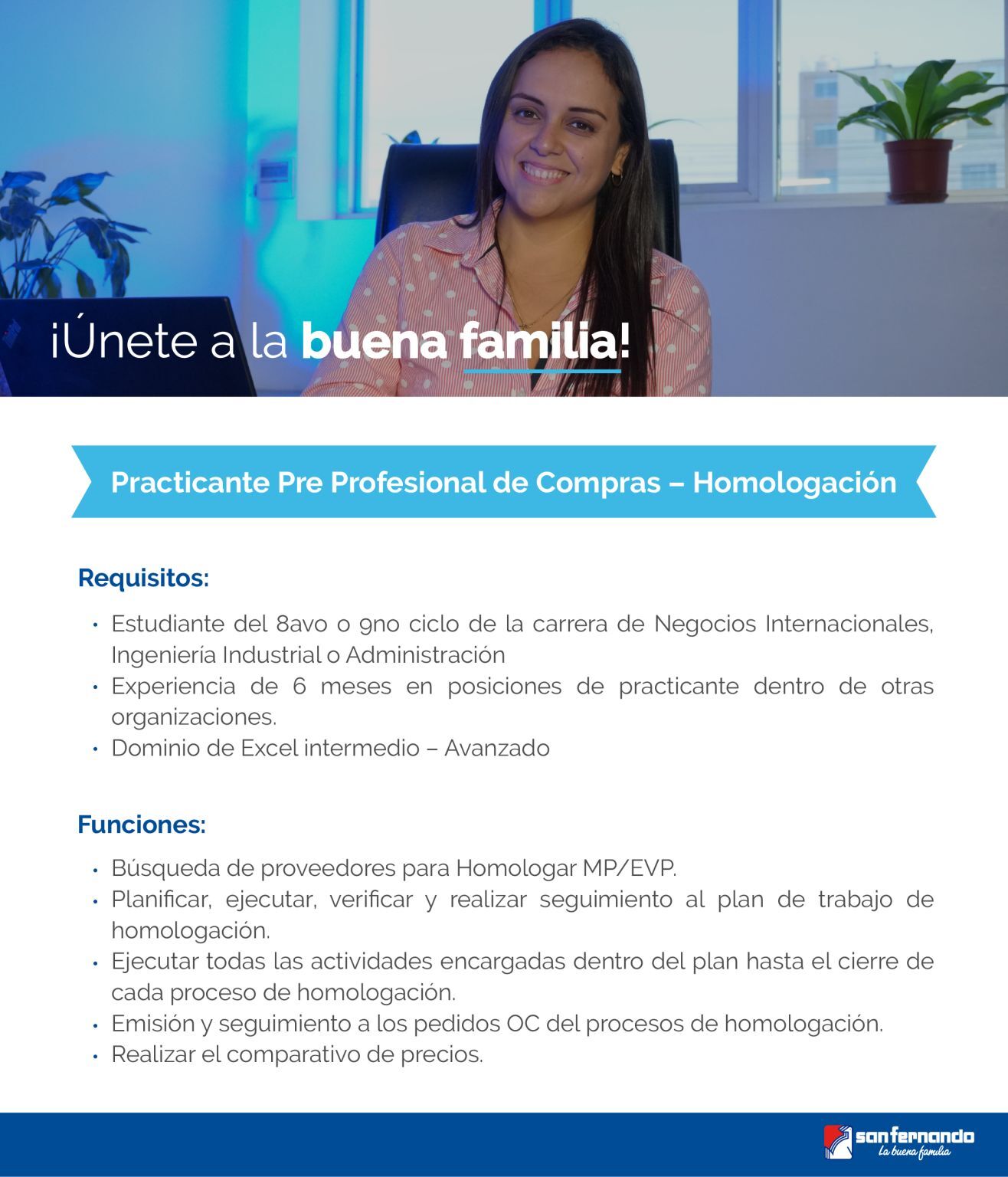 Posted on 5 de abril de 2023 otic Facultad No Comments Convocatoria – San Fernando 💼 #OSEG | Bolsa de trabajo UNAC ¡¡APROVECHA ESTA OPORTUNIDAD!!🤩✅ La empresa SAN FERNANDO, se encuentra en búsqueda de nuevos talentos.📍Practicante Pre Profesional de Compras📍Supervisor SST📌Para más información a detalle sobre los perfiles al siguiente link: https://www.bumeran.com.pe/…/practicante-pre…https://www.bumeran.com.pe/…/supervisor-sst-san…¡Únete y sé parte de la buena familia! 🙌🏼📌 Encuentra más oportunidades en nuestros portales de empleo: https://jobboard.universia.net/empleounachttp://unac.miradalaboral.com/