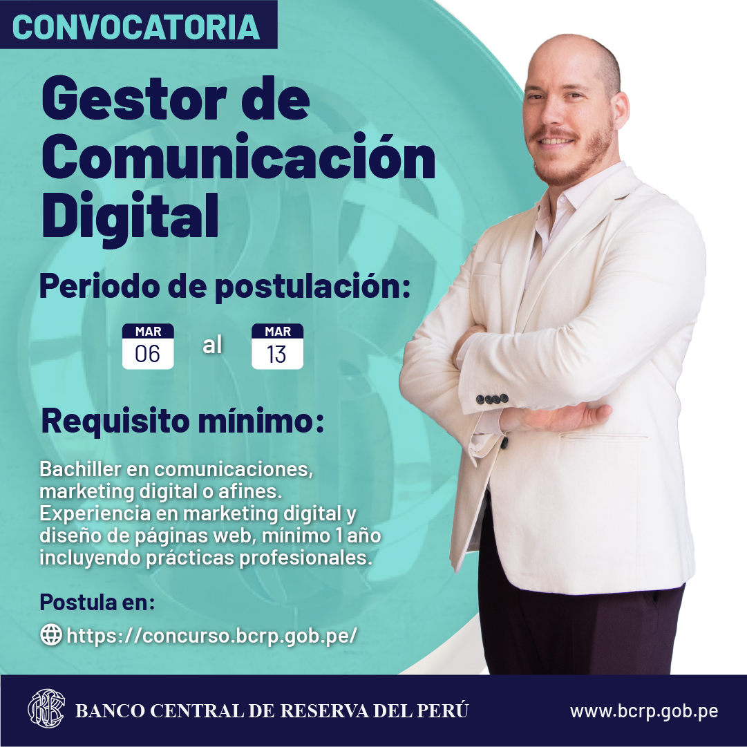 CONCURSO PÚBLICO N° 195 ESPECIALISTA EN PUBLICACIONES ECONÓMICAS – GESTOR DE COMUNICACIÓN DIGITAL – BCRP
