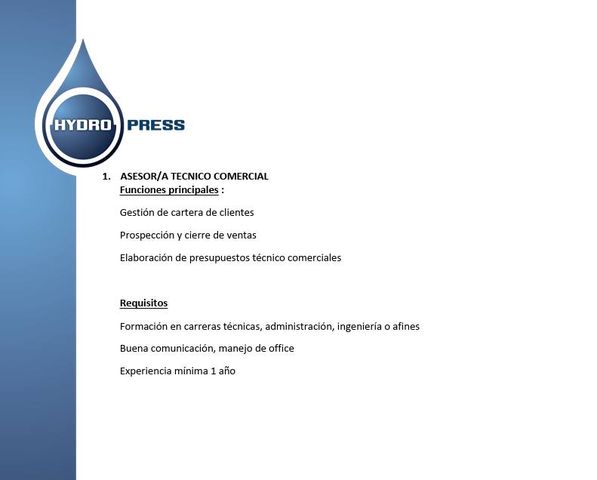 HYDRO PRESS SERVICE SAC – PRACTICANTE PARA AREA COMERCIAL – ASESOR/A TECNICO COMERCIAL