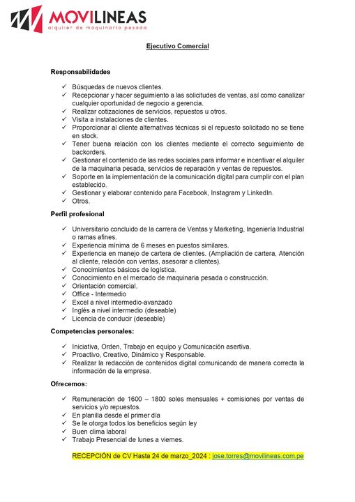 MOVILINEAS – PROFESIONAL EJECUTIVO COMERCIAL